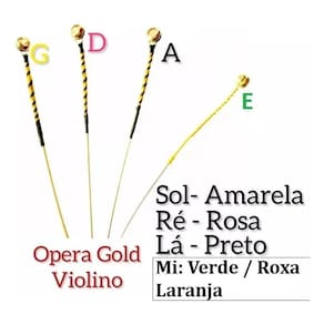 Neto violinos e acessorios musicais ltda As cordas ópera gold, mais um produto da marca ópera que se consagrou no mercado pelo sucesso de vendas do modelo ópera dominate, agora promete destacar-se novamente com o modelo soft gold. São produzidas com prata, alumínio e tungstênio - apenas a corda mi é em aço. Este modelo é ideal para músicos que preferem um tom aveludado e doce, com qualidade, ou seja, sem abafar o som do instrumento ou produzir chiados. Características: - tensão média - excelente resposta - confere som aveludado - som limpo e claro - ótima durabilidade - excelente para músicos de todos os níveis - fixador: bola - produto Mi verde Lá preto Ré rosa Sol amarelo Duvidas Pergunte no campo de perguntas do vendedor: 3 meses
