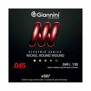 A série Electric traz toda a sonoridade dos encordoamentos Giannini para a sua guitarra e contra-baixo. O encordoamento para baixo 05 cordas Giannini GEEBRS5 é composto de um núcleo de aço revestido por Níquel. O Níquel produz um som brilhante e agressivo que atende uma grande variedades de estilos musicais, sendo bem resistente a oxidação e corrosão.