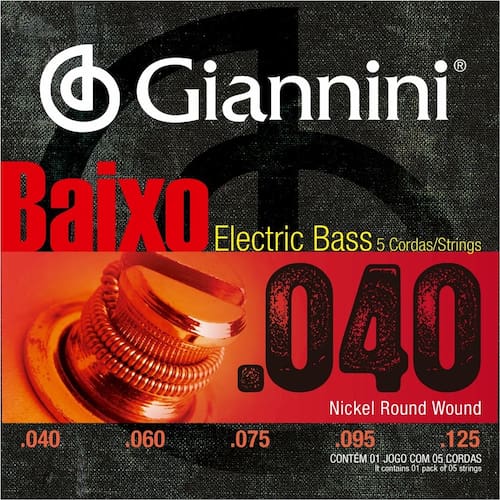 Encordoamento para Baixo 5 Cordas Giannini 040 / 125 GEEBRL5 As cordas Giannini Nickel Round Wound proporcionam o timbre e brilho que você procura para o seu baixo. Oferecem um timbre "cheio e gordo" com bastante volume e ótima durabilidade, além de apresentarem grande sutain e um atack forte quando Utilizado para executar slaps e tappings. São perfeitas para o rock e para outros estilos onde o baixo tem que se destacar. As cordas Giannini trazem a mesma qualidade presente em seus tradicionais instrumentos. Produto fabricado no Brasil Contúdo da embalagem: 5 cordas Tensão das Cordas: .040 - .060 - .075 - .095 - .125 Fornecedor: GIANNINI S/A OBS: Indicadas para baixos de escala longa 864 mm / 34 Polegadas Ean: 7890443002456