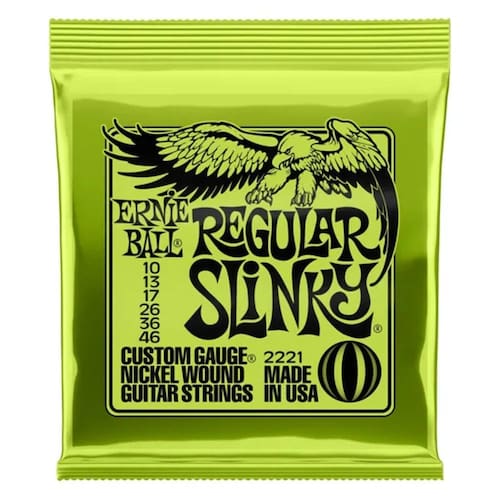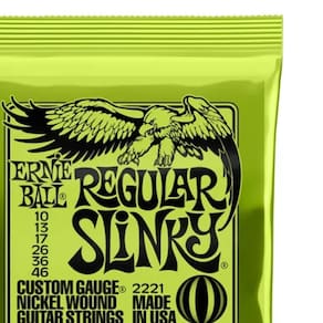 As Cordas Ernie Ball Regular Slinky são o nosso campeão de vendas, e são usadas por muitos músicos no mundo todo. Cordas Regular Slinky são usadas por Eric Clapton, John Mayer, Steve Vai e legiões de guitarristas. Estas cordas são fabricadas com precisão para os mais altos padrões e especificações mais exigentes, garantindo a consistência, desempenho ideal e durabilidade. Cordas Regular Slinky são feitas de fio de aço niquelado envolto em torno de um fio hexagonal de aço no núcleo. As cordas lisas são feitas de aço carbono temperado banhado à estanho, produzindo um tom bem equilibrado para a sua guitarra.