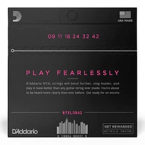 O jogo de cordas D’Addario NYXL Guitarra .009? – .042? tem tensão super leve padrão. Alta flexibilidade e conforto ao tocar.