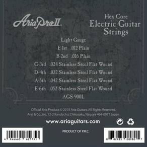 O Encordoamento Para Guitarra Flat Wound .012 AGS900L da Aria Pro II é um modelo que faz parte da série AGS-900, caracterizado por oferecer sensação suave e sedosa, com ruído mínimo dos dedos e durabilidade prolongada. Além disso, a superfície polida aumenta a suavidade e contribui para um timbre equilibrado e aveludado. Aplicação:Guitarra