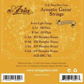 Encordoamento Para Violão Coated .010 Phosphor Bronze O Encordoamento Para Violão Coated .010 Phosphor Bronze AGS200CXL da Aria Guitars é um modelo que conta com C.R.T. tratamento Resistente à Corrosão , um processo que protege as superfícies metálicas do contato com oxigênio e umidade. Ao combinar esse processo com os melhores materiais, trefilação precisa e revestimento, cada conjunto da série AGS C mantém o tom familiar das cordas sem revestimento, ao mesmo tempo que prolonga sua durabilidade.