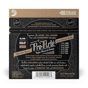As Pro-Arté são as cordas premium para violão nylon da DAddario. Todas as cordas Pro-Arté primas são escolhidas através de um sofisticado sistema à laser computadorizado, que realiza medições e checa a qualidade, assegurando maior sonoridade às cordas primas em cada jogo. Os bordões são constituídos de enrolamento de cobre com banho de prata sobre uma alma formada por múltiplos filamentos de Nylon, proporcionando um timbre quente, consistente e com ótima projeção.