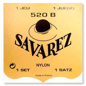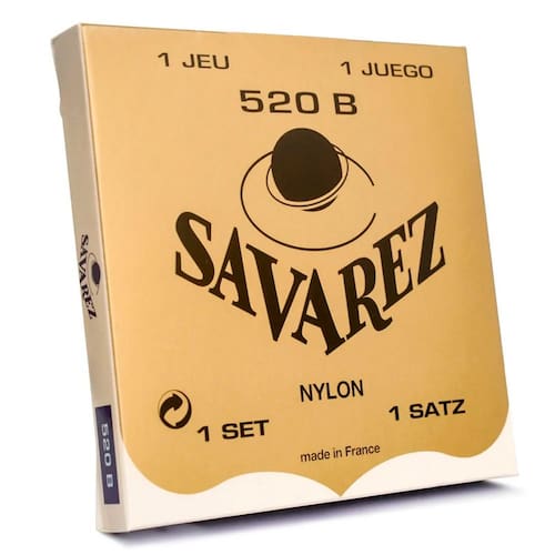 Tensão: leve nos baixos e primas Composição detalhada das cordas: * Baixos Savarez Traditional: núcleo de nylon multifilamentar com revestimento em cobre banhado em prata * Cordas Agudas Savarez traditional: nylon fosco de superfície levemente áspera