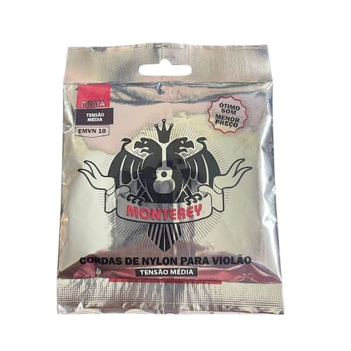 Encordoamento de Nylon para Violão, marca Monterey, modelo EMVN 10, Prata e fabricada no Brasil.