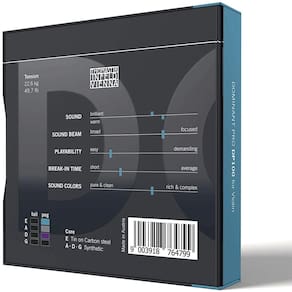 Encordoamento Thomastik Dominant Pró Violino 4/4 Excepcionalmente poderoso Bom equilíbrio de brilho e calor Ampla gama de cores de som Suporta o brilho do instrumento a longo prazo Reage imediatamente com um núcleo de som focado Um som que enche a sala Caráter tonal semelhante a um sino Alta resistência à pressão do arco Adequado para solistas Nível muito alto de dinâmica pode ser jogado muito baixo e muito alto Marca: Não Informado