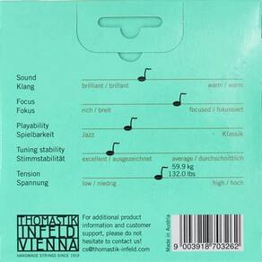Fabricadas na Áustria, essas cordas são resultado de um processo de fabricação altamente qualificado, garantindo a máxima qualidade e durabilidade. Com o Encordoamento Thomastik Cello Versum VE400, você terá a confiança de estar utilizando um produto de alto desempenho, utilizado e recomendado por músicos profissionais em todo o mundo.