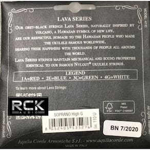Encordoamento Ukulele Aquila Soprano Lava Series High G - AQ110U Com base na vasta experiência no campo das técnicas antigas e modernas da construção de cordas, Aquila acredita que somente quando nos inspiramos na tradição dos grandes fabricantes de cordas do passado é que é possível descobrir a magia do som que só nossas cordas tem, e agora Nylgut, pode oferecer. As descobertas dos últimos anos, incluindo o antigo processo de pesagem de carga das cordas que a AQUILA redescobriu pela primeira vez, e a perfeição do processo de fabricação de Nylgut que revolucionou o mundo das cordas sintéticas, nos permitem construir uma ponte para o futuro, desenvolvendo cordas naturais e sintéticas com propriedades acústicas e com tecnologias totalmente inovadoras: o futuro da música sempre foi antecipado através de cordas.