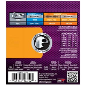 As cordas Elixir apresentam a renomada tecnologia Nanoweb, uma fina camada que envolve cada corda, proporcionando uma sensação suave ao tocar e ajudando a prolongar a vida útil das cordas, prevenindo a acumulação de sujeira e resíduos.