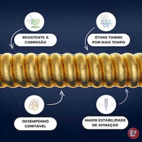 Fabricado com materiais de alta qualidade, as cordas Elixir são projetadas para resistir ao desgaste causado pelo toque constante, mantendo a integridade tonal ao longo do tempo. A marca Elixir é conhecida por produzir encordoamentos premium que oferecem desempenho superior e durabilidade, sendo a escolha confiável de músicos em todo o mundo.