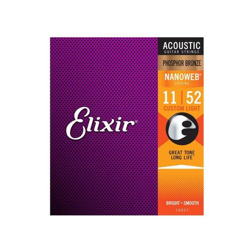 Encordoamento Violão Elixir Phosphor Nanoweb 011 052 16027 Consideradas pioneiras na tecnologia de cordas revestidas, as cordas Elixir® Strings estão disponíveis em várias medidas para violão aço, guitarra, baixo, banjo e mandolim. Elixir® Strings possuem um timbre de alta qualidade e músicos nos relatam que seu timbre dura mais do que o de qualquer outra corda, sem ou com revestimento. Elixir® Strings são as cordas de violão numero um nos E.U.A. Elas proporcionam ao seu violão um timbre que músicos nos relatam durar mais do que qualquer outra corda, sem ou com revestimento. Especificações: 1º Corda MI: .011 2º Corda Si: .015 3º Corda Sol: .022 4º Corda Re: .032 5º Corda La: .042 6º Corda MI: .052 Características gerais: - Modelo: 16027 - Tipo: Encordoamento para violão - Número de cordas: 6 - Tensão: 0.11 - Material: Phosphoro Bronze Conteúdo da Embalagem: - 01 Encordoamento com 06 cordas Ean: 733132160273