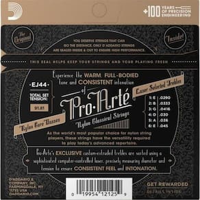Com uma aplicação específica para violão de tensão alta, as cordas apresentam uma configuração única: .029 - .045 - Extra Pesada. O material utilizado é nylon de alta qualidade, garantia de uma sonoridade clara e precisa. A pesquisa desenvolvida pela D'Addario resultou em uma camada envoltória em prata, que ajuda a destacar o som.