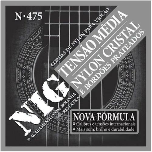 Encordoamento Violão Nylon Tensão Média Nig N475 .028” As cordas Nig proporcionam o timbre e brilho que você procura para o seu violãoCordas primas (lisas) monofilamento de nylon cristalBordões encapados com bronze 80/15 sobre monofilamento de nylonEspecificações: Medidas: 028”/.043”Tensão: Média Acabamento com bolinha 4º Ré extra Contém 06 cordasNova Fórmula; Calibres e tensões internacionais; Mais som, brilho e durabilidade; Bordões: PrateadosPrimas: Nylon Cristal *Imagens Ilustrativas*