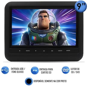 Encosto De Cabeça De Sobrepor Com Leitor De Dvd 9 Polegadas - Preto Descrição:Utilizadas para aumentar o entretenimento dos passageiros durante viagens e passeios, as telas de encosto são comumente procuradas para uso com crianças, graças a sua capacidade de reproduzir conteúdo diferente e de forma independente ao player principal do veículo.Este aparelho conta com tela de 9 polegadas, leitor de dvd integrado, entrada usb, sd card, fone de ouvido e av.Especificações técnicas:- tela 9 polegadas;- vídeos suportados: 640x480 4:3 480p / 1200 kbps mp4 / avi divcx mpeg;- disponível somente na cor: preto;- sistema de vídeo: pal / ntsc;- medidas da carcaça: 25,5 x 19,4 cm largura x altura ;- 1 entrada de áudio e vídeo;- 1 saída de áudio e vídeo;- possui falante para áudio da tela;- funciona independente do sistema multimídia do veículo;- controle remoto multifuncional jogos e funções ;- dvd com jogos;- compatível com mp3 e mp4;- entradas usb / sd card / fone de ouvido;- carregador automotivo 12v / comprimento do cabo aprox. 2 metros;- voltagem: 12v.