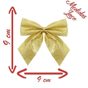 Enfeite Árvore Natal Laço Lacinho Dourado Glitter Brilhante 4 Peças 9cm