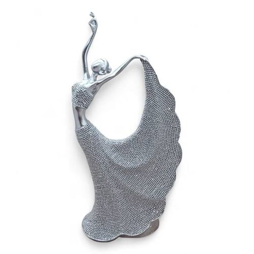 Enfeite Bailarina Brilhante Prata Delicada Resina 25 cm