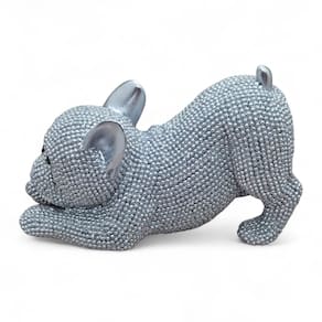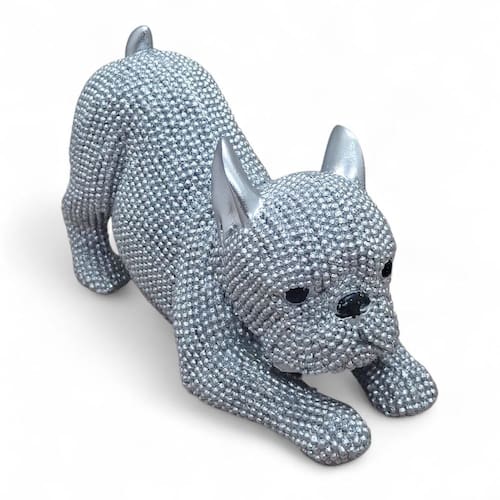 Encante um pet lover com este enfeite de cachorrinho buldogue prata com brilho O cão é um animal símbolo de fidelidade e companheirismo, que representa coragem, diversão, sociabilidade, lealdade, vigilância, inteligência e proteção.