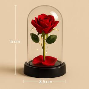 Enfeite Cúpula de Vidro Rosa Permanente 15CM Mini Base de Plástico Com Led Fio de Fada Encante com um presente romântico e elegante: a Cúpula com Rosa Artificial e Iluminação LED. Ideal para datas especiais, essa peça combina delicadeza e sofisticação, criando uma atmosfera mágica. A cúpula é feita de vidro transparente e resistente, com base em plástico discreto, realçando a beleza da rosa vermelha artificial. O fio de LED amarelo tipo fada envolve a flor, proporcionando uma iluminação suave e aconchegante. A alimentação é feita por baterias LR44 inclusas , garantindo praticidade e pronto uso. Benefícios do produto: Presente simbólico e eterno para ocasiões românticas Iluminação charmosa com fio de LED amarelo Rosa artificial com visual realista, sem necessidade de manutenção Produto já acompanha bateria, pronto para uso Especificações Técnicas: Altura: 15 cm Diâmetro: 8,5 cm Material da cúpula: Vidro Base: Plástico Iluminação: Fio de LED amarelo Alimentação: 3 baterias LR44 inclusas Rosa artificial vermelha Dica de uso e conservação: Evite expor ao calor excessivo ou umidade. Limpar com pano seco e macio. Ideal para decoração de ambientes internos. e segurança: Produto revisado, seguro para uso decorativo. Qualquer defeito de fabricação pode ser solicitado troca conforme política do marketplace. Surpreenda quem você ama com um presente simbólico e encantador. Ideal para aniversários, Dia dos Namorados ou simplesmente para demonstrar carinho. Marca: Não Informado
