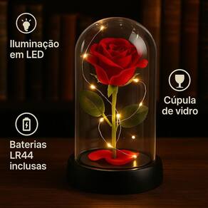Enfeite Cúpula de Vidro Rosa Permanente 15CM Mini Base de Plástico Com Led Fio de Fada Encante com um presente romântico e elegante: a Cúpula com Rosa Artificial e Iluminação LED. Ideal para datas especiais, essa peça combina delicadeza e sofisticação, criando uma atmosfera mágica. A cúpula é feita de vidro transparente e resistente, com base em plástico discreto, realçando a beleza da rosa vermelha artificial. O fio de LED amarelo tipo fada envolve a flor, proporcionando uma iluminação suave e aconchegante. A alimentação é feita por baterias LR44 inclusas , garantindo praticidade e pronto uso. Benefícios do produto: Presente simbólico e eterno para ocasiões românticas Iluminação charmosa com fio de LED amarelo Rosa artificial com visual realista, sem necessidade de manutenção Produto já acompanha bateria, pronto para uso Especificações Técnicas: Altura: 15 cm Diâmetro: 8,5 cm Material da cúpula: Vidro Base: Plástico Iluminação: Fio de LED amarelo Alimentação: 3 baterias LR44 inclusas Rosa artificial vermelha Dica de uso e conservação: Evite expor ao calor excessivo ou umidade. Limpar com pano seco e macio. Ideal para decoração de ambientes internos. e segurança: Produto revisado, seguro para uso decorativo. Qualquer defeito de fabricação pode ser solicitado troca conforme política do marketplace. Surpreenda quem você ama com um presente simbólico e encantador. Ideal para aniversários, Dia dos Namorados ou simplesmente para demonstrar carinho. Marca: Não Informado