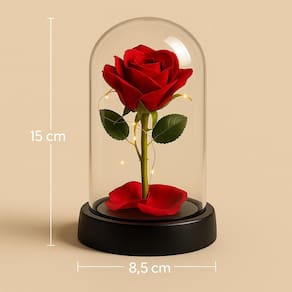 Enfeite Cúpula de Vidro Rosa Permanente 15CM Mini Base de Plástico Com Led Fio de Fada Encante com um presente romântico e elegante: a Cúpula com Rosa Artificial e Iluminação LED. Ideal para datas especiais, essa peça combina delicadeza e sofisticação, criando uma atmosfera mágica. A cúpula é feita de vidro transparente e resistente, com base em plástico discreto, realçando a beleza da rosa vermelha artificial. O fio de LED amarelo tipo fada envolve a flor, proporcionando uma iluminação suave e aconchegante. A alimentação é feita por baterias LR44 inclusas , garantindo praticidade e pronto uso. Benefícios do produto: Presente simbólico e eterno para ocasiões românticas Iluminação charmosa com fio de LED amarelo Rosa artificial com visual realista, sem necessidade de manutenção Produto já acompanha bateria, pronto para uso Especificações Técnicas: Altura: 15 cm Diâmetro: 8,5 cm Material da cúpula: Vidro Base: Plástico Iluminação: Fio de LED amarelo Alimentação: 3 baterias LR44 inclusas Rosa artificial vermelha Dica de uso e conservação: Evite expor ao calor excessivo ou umidade. Limpar com pano seco e macio. Ideal para decoração de ambientes internos. e segurança: Produto revisado, seguro para uso decorativo. Qualquer defeito de fabricação pode ser solicitado troca conforme política do marketplace. Surpreenda quem você ama com um presente simbólico e encantador. Ideal para aniversários, Dia dos Namorados ou simplesmente para demonstrar carinho.