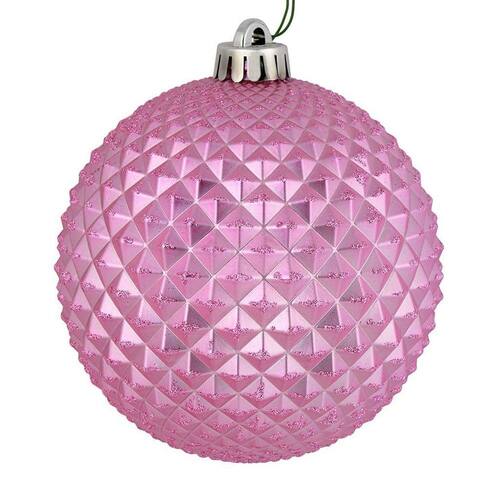 4" — Rosa — Durian — Bola — Inquebrável — Boné perfurado — Glitter | Enfeite de árvore de Natal Vickerman (pacote com 6)