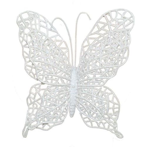 Enfeite De Natal Borboleta Prata Arvore/Mesa/Porta 15Cm