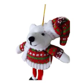 Contém: 01 Enfeite de Natal Pendurado Urso com Cachecol, Gorro e Roupa de Tricô