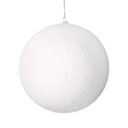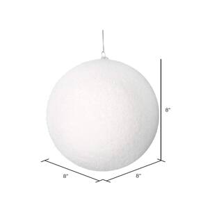 Enfeite de Natal Vickerman de 8", bola flocada, acabamento branco flocado, plástico inquebrável, decoração de árvore de Natal natalina — o plástico inquebrável durará por muitos anos. Seguro para crianças e animais de estimação