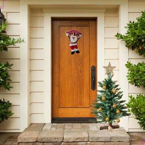 Esse enfeite de porta possui um lindo boneco de Papai Noel confeccionado em tecido macio e agradável ao toque, além de uma placa resistente em EVA. Ele possui tamanho ideal, medindo 41 x 24,5 cm, e pode ser utilizado tanto na decoração da sua casa quanto da sua empresa.