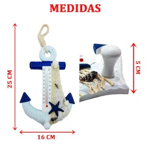 Enfeite Decorativo Ancora Termômetro Náutico Marítimo 24 cm