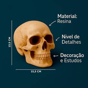 Enfeite Decorativo Cabeça Crânio Caveira Realista Extra Grande 13CM Presente Halloween Anatomia Óssea Destaque sua decoração com os Enfeites de Crânio Humano em Resina - peças que combinam realismo, acabamento refinado e versatilidade para diversos ambientes. Ideais para composições góticas, temáticas de Halloween, vitrines criativas, consultórios alternativos ou até mesmo como objeto de estudo decorativo. Produzidos em resina de alta qualidade, esses crânios impressionam pelo nível de detalhe, inclusive nas versões menores. São perfeitos para composições individuais ou em série. A coloração bege fosca simula ossos reais, oferecendo um visual impactante com toque artesanal. Benefícios: Alta fidelidade anatômica, mesmo nos modelos menores Acabamento detalhado e resistente Ideal para ambientes temáticos, Halloween ou consultórios Produto leve, durável e fácil de posicionar Especificações Técnicas: Material: Resina Cor: Bege única Tamanho: Altura: 13,5cm / Largura: 6cm / Comprimento: 15,5cm Acabamento: Detalhado artesanal : 90 dias para defeitos de fabricação Cuidados e Conservação: Limpar com pano seco Evitar exposição direta à umidade extrema Manter em ambiente arejado para preservar o acabamento Garanta já o seu Decore com personalidade, impacto visual e qualidade superior. Cada peça é única e feita para impressionar. Marca: Não Informado