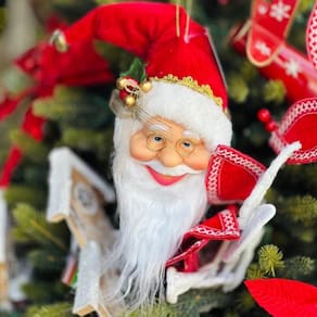 Enfeite Decorativo Cabeça Papai Noel - 50cm Este enfeite decorativo apresenta a clássica cabeça do Papai Noel com detalhes festivos, ideal para pendurar em portas, paredes ou árvores de Natal, trazendo charme e alegria ao ambiente. Com 50cm de altura, o rosto do bom velhinho conta com um acabamento detalhado, proporcionando um toque encantador à decoração natalina. Medidas: 50cm de altura Material: Tecido, Plástico e Ferro Observação: As cores podem variar levemente conforme iluminação e configuração de monitor.