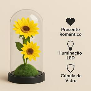 Enfeite decorativo Modelo Cúpula de Vidro e Base em madeira com Girassol Permanente Transforme momentos especiais com a Luz LED Flor Eterna Girassol. Esta luminária combina delicadeza e elegância, perfeita para surpreender quem você ama. Com cúpula de vidro transparente e base de madeira, exibe um belo girassol iluminado por luzes LED, criando um ambiente acolhedor e romântico. Ideal como presente de aniversário, Dia dos Namorados ou decoração de ambientes. Benefícios detalhados: Girassol permanente com acabamento artesanal. Iluminação LED suave, ideal para criar atmosfera aconchegante. Cúpula de vidro que protege e valoriza a flor. Base de madeira com acabamento clean. Presente criativo e marcante para ocasiões especiais. Especificações Técnicas: Material: Vidro, madeira e flor artificial de alta qualidade. Tipo de luz: LED Alimentação: Pilhas AA ou alimentação elétrica, conforme variação Altura aproximada: 21 cm Diâmetro da base: 10 cm Cor: Girassol amarelo com iluminação quente Dicas de uso e conservação: Ideal para uso decorativo em mesas de cabeceira, salas, escritórios ou presentes românticos. Evite expor diretamente ao sol ou umidade para preservar a estética. Limpeza com pano seco e macio. e segurança: