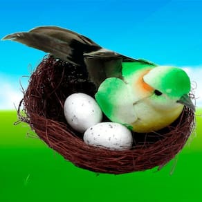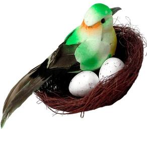Enfeite Decorativo Pássaro Verde Ninho Ovos 5x15cm