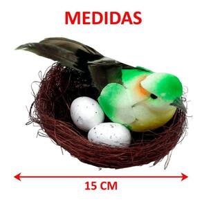 Enfeite Decorativo Pássaro Verde Ninho Ovos 5x15cm -