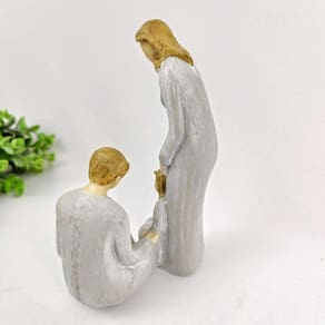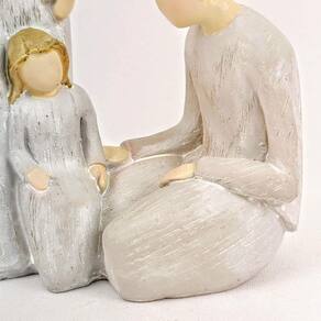 Enfeite Estátua Família Com Filha 17X11X6Cm Cinza Barroco