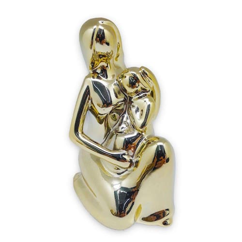 Este enfeite é uma representação artística de uma mãe amorosa envolvendo seu filho em um abraço afetuoso. Cada detalhe é cuidadosamente esculpido em porcelana de alta qualidade, garantindo uma peça durável e de grande beleza estética.