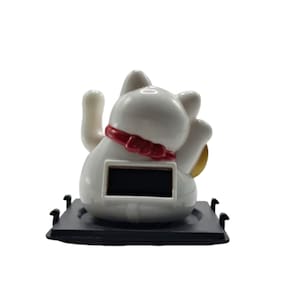 O Maneki Neko Branco representa paz, harmonia e proteção. Alimentado por energia solar, movimenta o braço esquerdo em gesto acolhedor, trazendo boas vibrações para qualquer ambiente. Um enfeite delicado e cheio de significado.