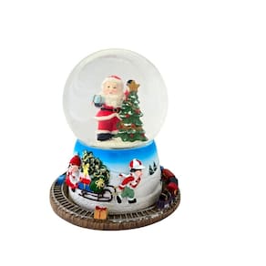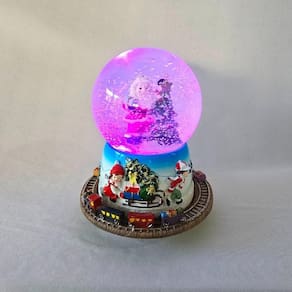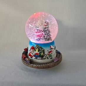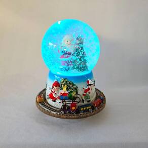 ;Globinho de NATAL MUSICAL com neve artificial e iluminação de LED que mudam de cores, uma ótima opção para sobrepor um móvel, colocar junto a árvore de natal, naquele cantinho especial, em seu comércio ou onde seu bom gosto mandar. A base que sustenta o globo é confeccionada em resina, tem 01 PAPAI NOEL E 01 ÁRVORE de resina com água e glitter que simula neve artificial e ao redor 01 MINI trenzinho confeccionado em resina que ao ligar gira ao redor do globo. Um detalhe que se destaca é que quando liga as luzes de LEDs vão mudando de cor e ; joga particulas que simulam neve artificial. detalhe que dará um destaque a mais em toda a peça e um charme ao seu ambiente. Confeccionadas em resina, material esse com maior resistência e riqueza de detalhes assim como a pintura de excelente qualidade, perfeito!