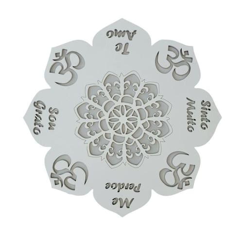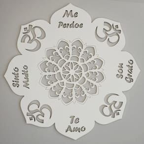 Enfeite Mandala Sou Grato, Te Amo, Sinto Muito, Me Perdoe - Branco 20x20 Enfeite Mandala Sou Grato, Te Amo, Sinto Muito, Me Perdoe - Branco 20x20 - Mandala em MDF Estas Mandalas são uma excelente ideia para decorar de forma econômica e bonita sua casa, sala, quarto ou qualquer outro ambiente com delicadezas, também serve para artesanatos em geral, ou simplesmente presenteie quem você ama.