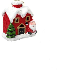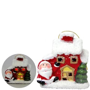 Enfeite Natalino de Mesa e ou Pendente Casinha Nevada Papai Noel Acende Luzes Coloridas Led