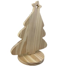 Feito de pinus de alta qualidade, esse enfeite possui um design delicado em formato de pinheirinho com uma estrela no topo. Sua cor natural traz um toque rústico e elegante à decoração, combinando perfeitamente com o clima natalino.