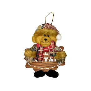 Enfeite de Natal com Placa Ursinho 15cm - Casambiente NATAL108-ursinho Enfeite Natalino para Porta com Placa - Casambiente