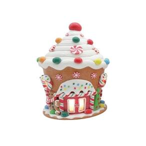 Enfeite Natalino Casa de Cupcake do Papai Noel com LED 25cm