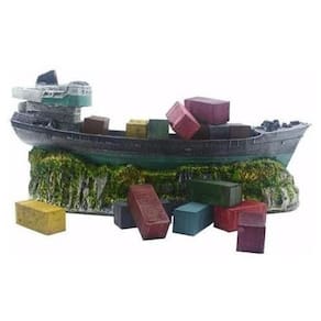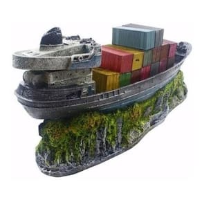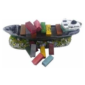 Enfeite navio contêiner - b43 - aquário Enfeite de resina de poliéster para uso submerso em aquários de água doce ou salgada. Material totalmente atóxico, pintura de alta durabilidade e compatível ao meio biológico.