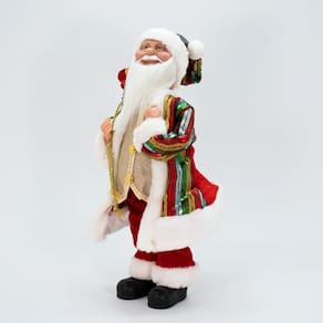 Papai Noel Musical Com Movimento de cabeça é o presente perfeito para celebrar o Natal com música e alegria. Com um design encantador e detalhes cuidadosamente elaborados, este Papai Noel é uma adição encantadora à decoração natalina, deixe sua casa mais festiva e elegante com esse Boneco Papai Noel Musical Vestido em seu clássico Traje vermelho.