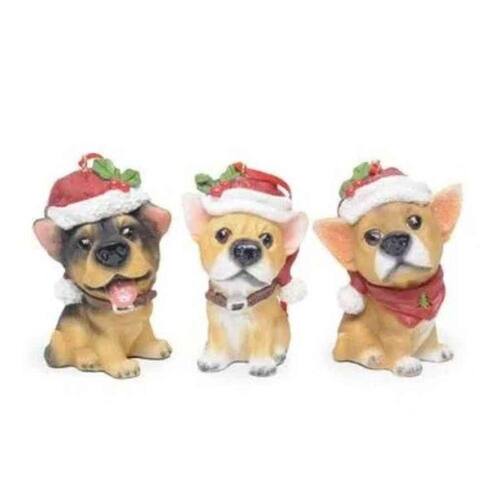 Cachorro Em Resina C/gorro 10x07x06cm C/3 Pçs