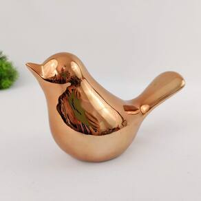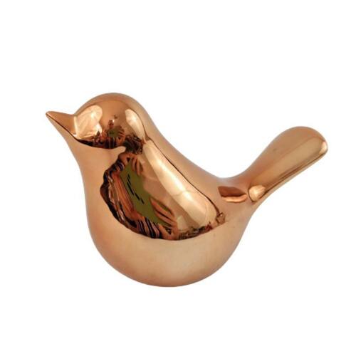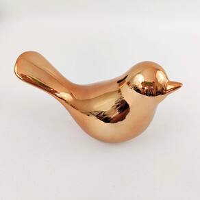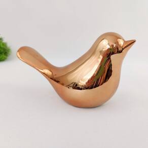 Enfeite Passaro Cobre Rose Gold 11X20X8Cm Ceramica Decoracao