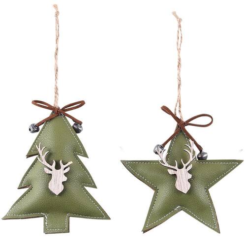 Enfeite Para Pendurar Arvore E Estrela Com Rena, Verde E Marrom. Variados.